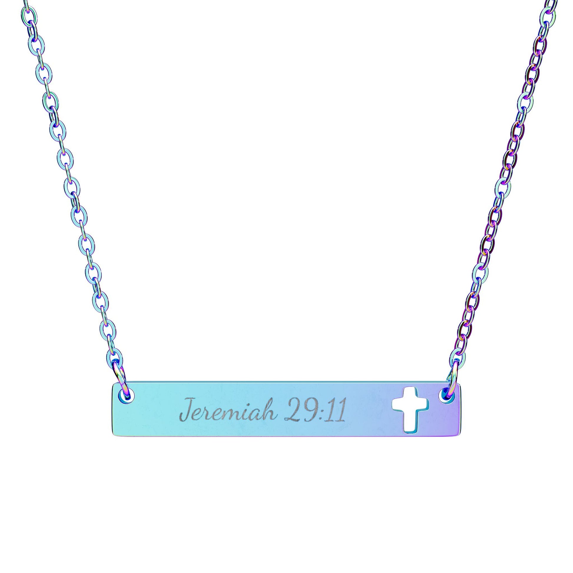 Engraved Cross Bar Necklace - Personalized Scripture Jewelry